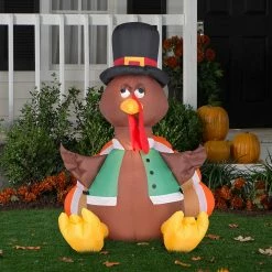Gemmy Outdoor Airblown Inflatable Happy Turkey, Self-Inflates, G-26396